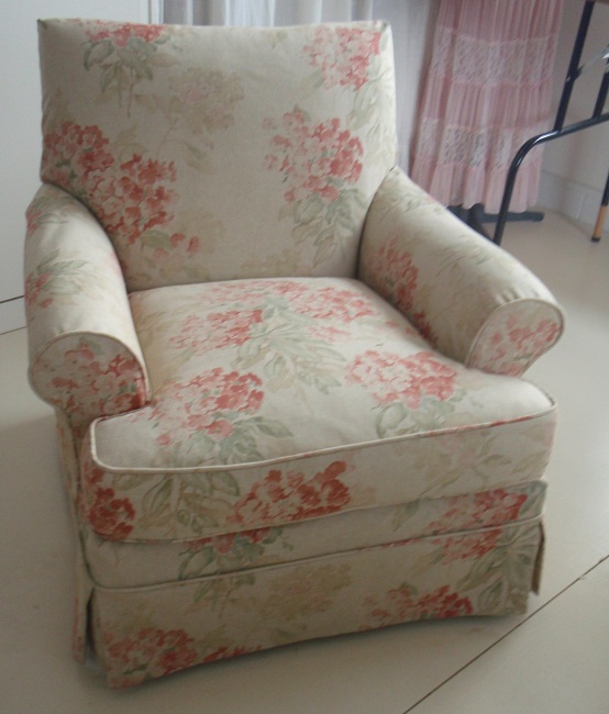 Here is the office chair completed with the new cottage/vintage look, oh yeah that was the request from my client since she didn't want to do the fabric shopping she laid out her list of requests and I was to do my best to come up with something great! this made me a bit nervous cause you know how these things go ... when you are looking for something specific well that's when things can get very frustrating. I was lucky this time though. Here was the list